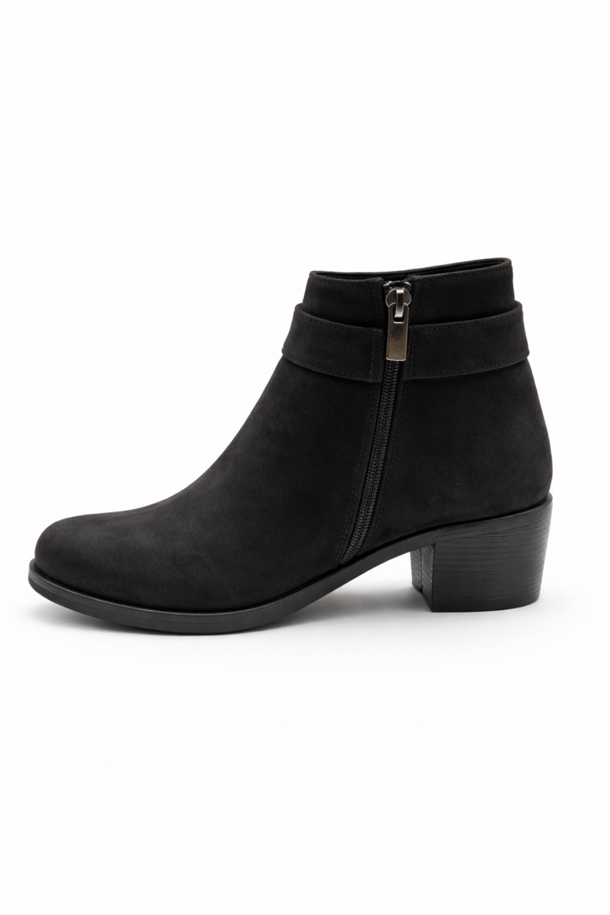Kadın Siyah Süet Kısa Topuklu Bot – Tokalı Günlük Rahat Kışlık Bot