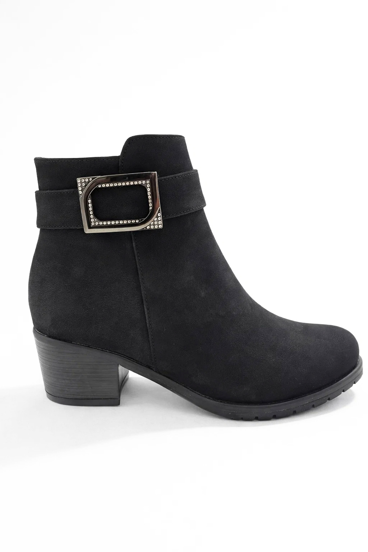 Kadın Siyah Süet Kısa Topuklu Bot – Tokalı Günlük Rahat Kışlık Bot